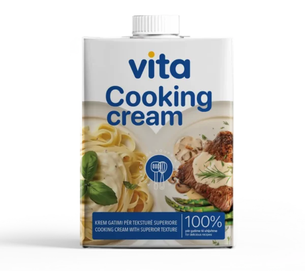 Vita Cooking Cream sjell kremozi të sigurt në kuzhinë. Përzihet shpejt me gatimet e nxehta dhe u jep salcave, supave, tavave dhe pjekjeve një përfundim të lëmuar. Përdoreni për të plotësuar salcat e makaronave, për të pasuruar pure patatesh ose për t’i dhënë trup gratinave dhe torteve të kripura.