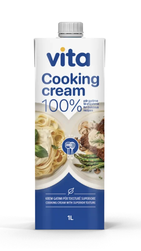 Vita Cooking Cream sjell kremozi të sigurt në kuzhinë. Përzihet shpejt me gatimet e nxehta dhe u jep salcave, supave, tavave dhe pjekjeve një përfundim të lëmuar. Përdoreni për të plotësuar salcat e makaronave, për të pasuruar pure patatesh ose për t’i dhënë trup gratinave dhe torteve të kripura.